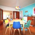 Mit insgesamt sechs Zimmern, darunter vier geräumige Schlafzimmer und zwei moderne Badezimmer, bietet dieses Haus ausreichend Platz für die ganze Familie. Der rustikale Ofen im Wohnzimmer sorgt für eine gemütliche Atmosphäre in den kühleren Monaten. Zudem erweitert eine einladende Terrasse den Wohnraum ins Freie, ideal für entspannte Stunden oder gesellige Abende.