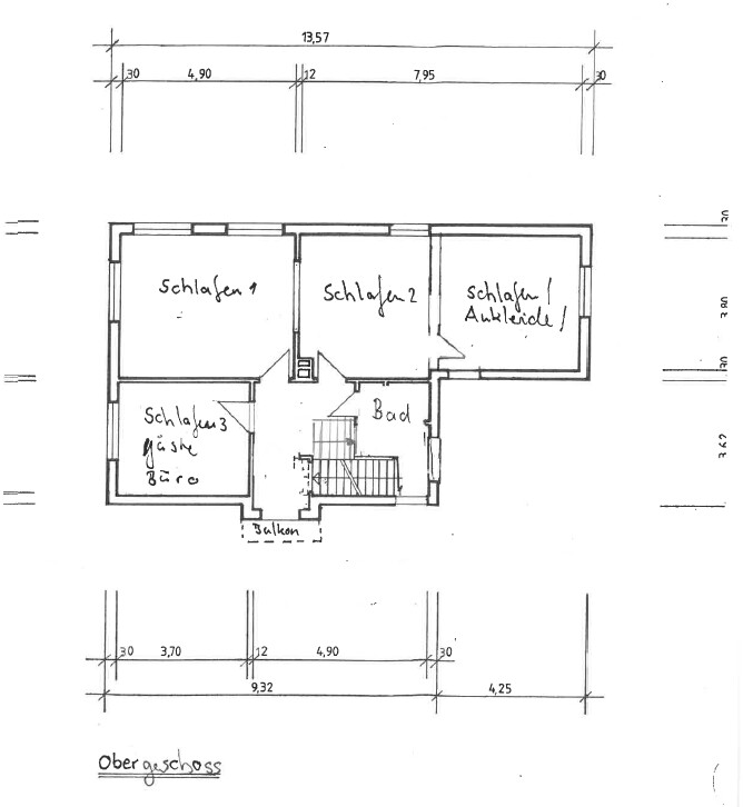 4 Zimmer (Küchenanschluss vorhanden), Bad mit Dusche /WC, Flur, Balkon