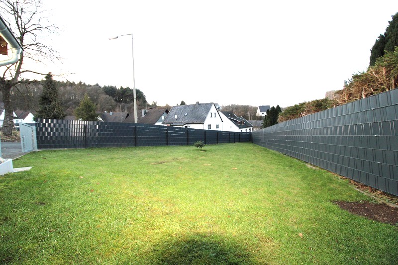 Das eingezäunte Grundstück ist pflegeleicht mit Rasen eingesät. Ein überdachter Freisitz lädt zum Relaxen ein.